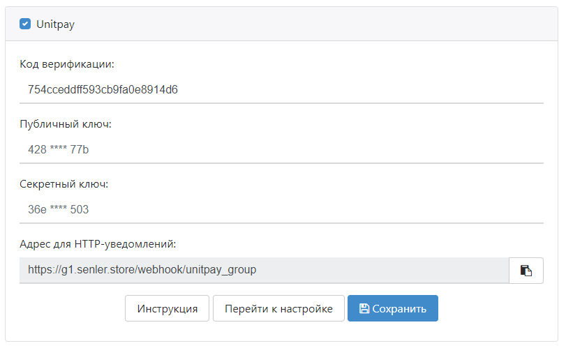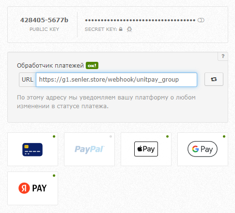 Шаг 5. Настройки в Unitpay