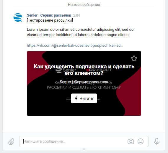 Внимание! После создания рассылки или сообщения в чат-боте с вложениями обязательно тестируйте сообщении, чтобы убедиться, что все корректно отправляется. ВКонтакте может прикрепить не все вложения.