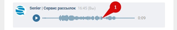 Внимание! Если после audmsg у Вас нет минуса, то голосовое сообщение было записано не от имени сообщества и в рассылке не будет отправлено.