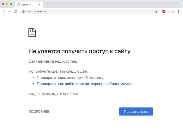 В браузере Google Chrome стала появляться ошибка ERR_SSL_VERSION_INTERFERENCE. Сайт при этом не открывается.