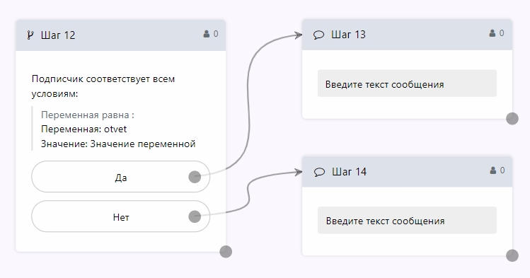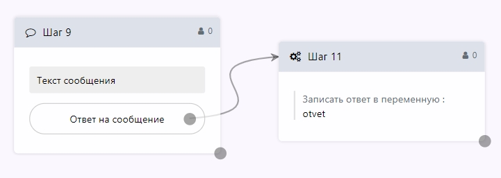 Внимание! Шаг с сохранением ответа в переменную должен всегда идти от пункта "Ответ на сообщение".