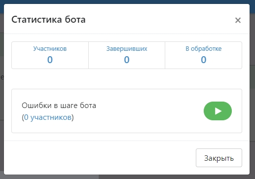 Ошибки в шаге бота - количество пользователей, которое столкнулось с ошибкой при выполнении шагов в боте. Они учитываются как Завершившие, но их можно заново запустить, чтобы повторить выполнение шагов, на которых возникла ошибка.
