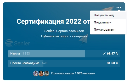 Чтобы получить ссылку на опрос, необходимо нажать на многоточие в опросе и выбрать Поделиться.