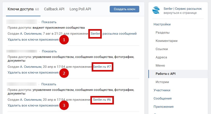 Удаление ключей позволяет удалить доступ к сообществу ВКонтакте через API. Чтобы удалить ключи, необходимо перейти в Управление сообществом ВКонтакте в раздел Работа с API и удалить все ключи, выданные для приложения.