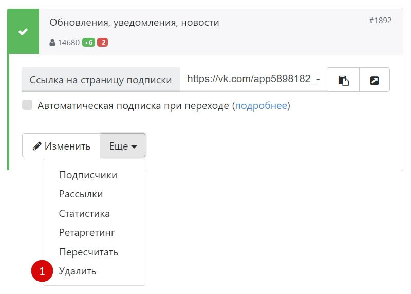 При удалении группы все пользователи, которые были на нее подписаны, автоматически из нее исключаются без возможности восстановления. Эта информация сохраняется в разделе Статистика - Подписки.