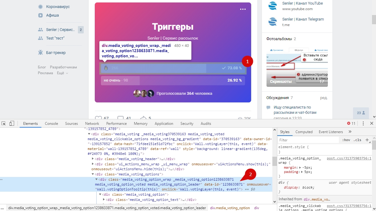 Чтобы получить идентификатор ответа в опросе, необходимо нажать правой кнопкой мыши на нужный вариант ответа и в открывшемся меню выбрать Просмотреть код ("Просмотреть код элемента" или "Исследовать элемент" в зависимости от браузера).