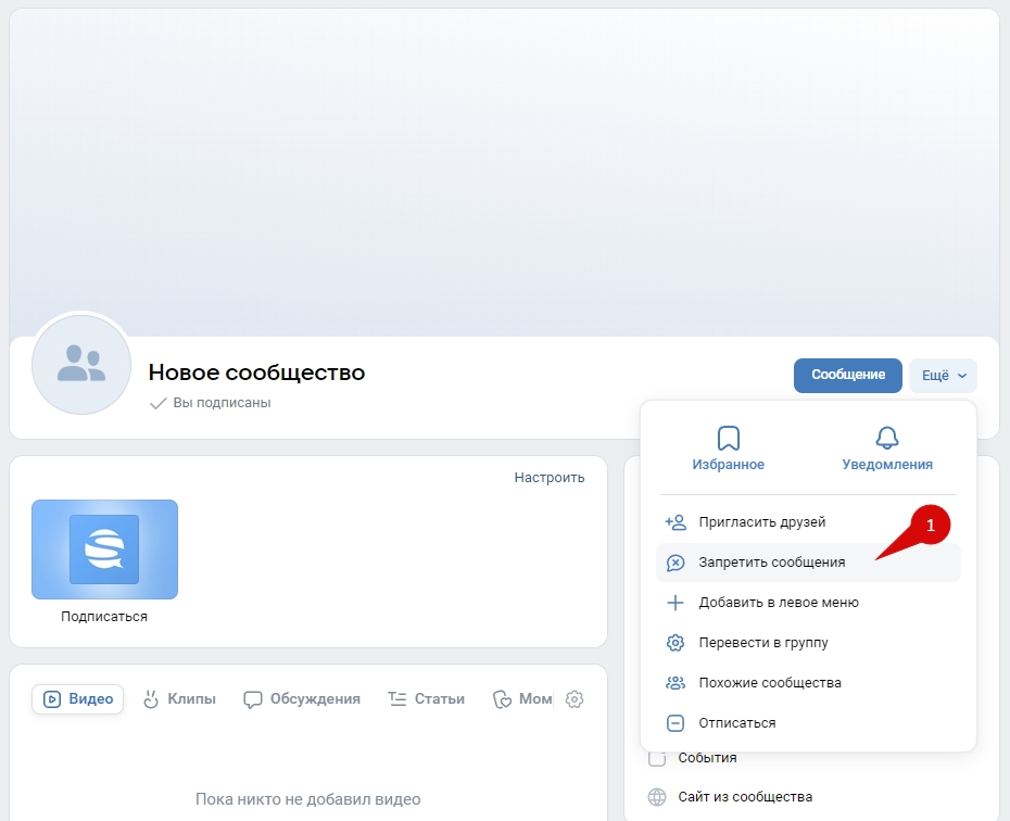 Чтобы запретить сообщения от сообщества ВКонтакте, необходимо перейти на страницу сообщества и в меню «Еще» выбрать пункт «Запретить сообщения».