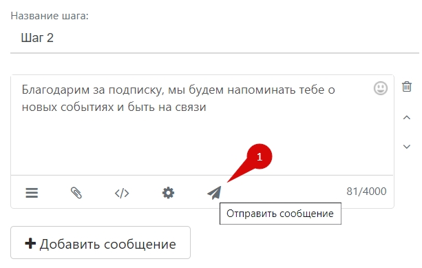 Первым делом протестируйте сообщение в данном шаге, так как в его настройках может быть ошибка, которая будет показана при тестировании.