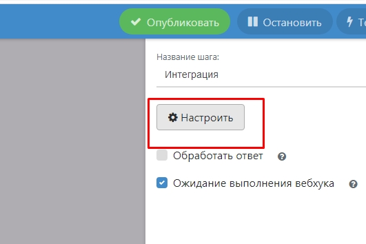 Кнопка "Настроить" загрузит iframe Senler и отправит запрос type=setData в интеграцию с данными из настроек шага