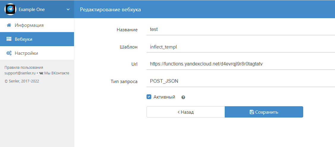 при попадании лида на шаг отправится вебхук на ваш сервер с данными подписчика и публичными и приватными настройками шага
