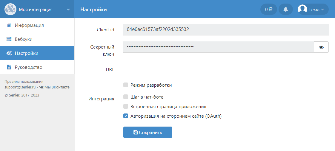 ClientID и секретный ключ нужен для авторизации через OAuth и для проверки подписи при открытии приложения в iframe для таких интеграциях как "Шаг в чат-боте" и "Встроенная страница приложения"