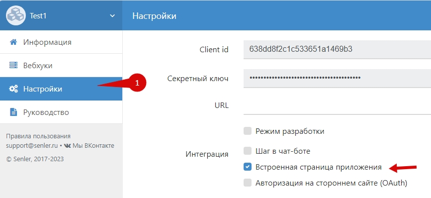 После нажатия на интеграцию, открывается всплывающее окно со встроенной страницей в iframe, содержимое которой находится на сервере разработчика