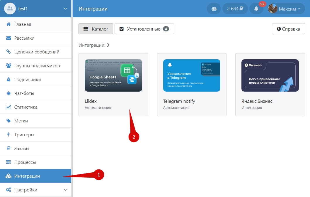 Позволяет пользователю взаимодействовать с приложением из раздела интеграции