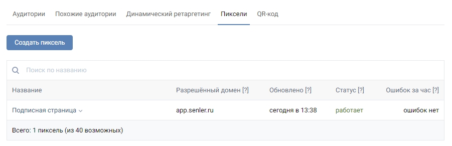 Перейдите в Рекламный кабинет ВКонтакте и создайте пиксель. В одном кабинете ВКонтакте можно создать до 40 пикселей.