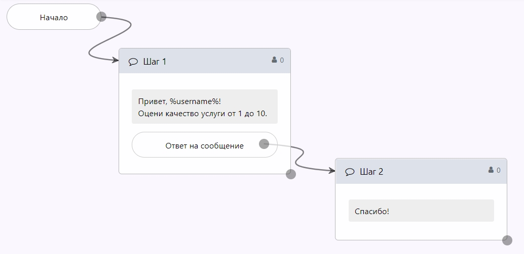 Для того, чтобы чат-бот мог реагировать на ответы пользователей, в шаге с сообщением необходимо включить опцию Ожидание ответа.