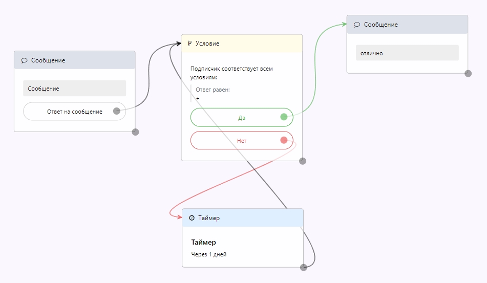 Полный список условий: https://help.senler.ru/bot/usloviya#otvet-na-soobshenie