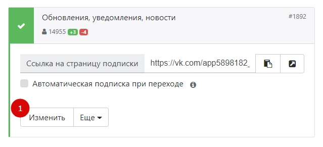 Чтобы зайти в настройки группы подписчиков, нужно у выбранной группы нажать на кнопку Изменить.