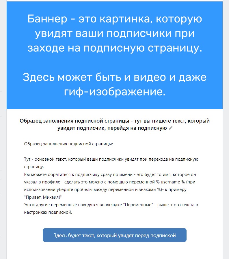 Вот так будет выглядеть подписная страница группы подписчиков из примера выше для ваших потенциальных подписчиков: