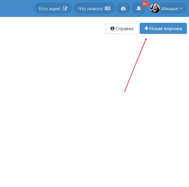Для того, чтобы создать новую воронку, нажмите на кнопку "Новая воронка" в правом верхнем углу страницы с воронками: