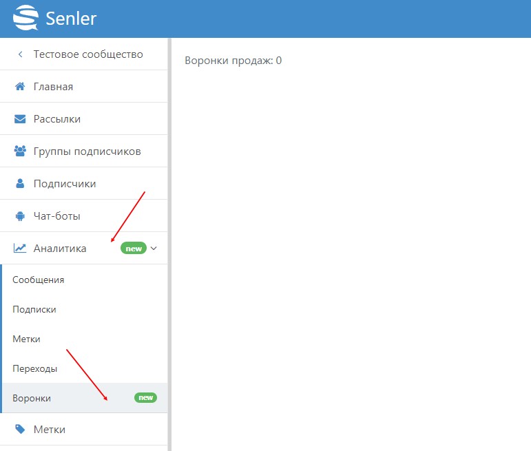 Воронки находятся в разделе "Аналитика" в главном меню сообщества: