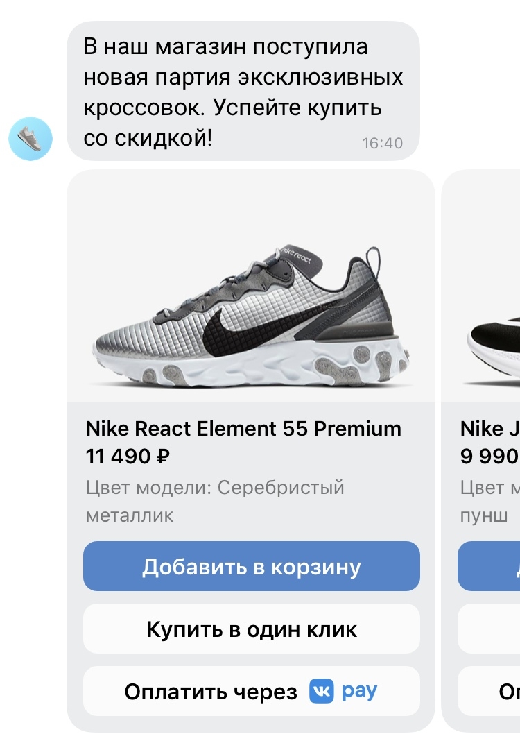 Карусель — это шаблон сообщения, который содержит несколько элементов, элементы карусели можно скролить горизонтально.