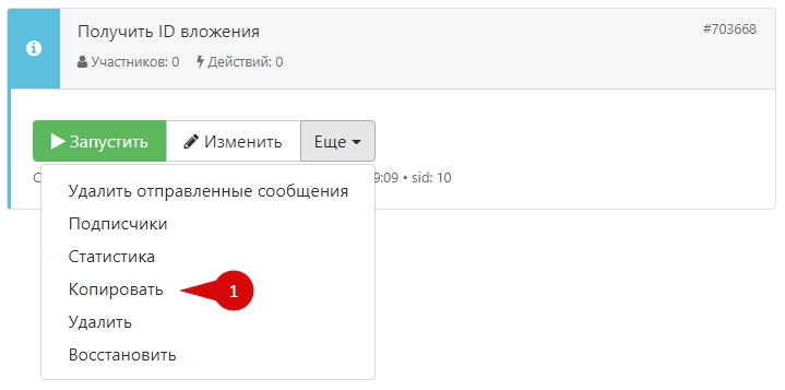Чтобы скопировать бота, выберите соответствующий пункт меню:
