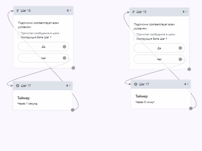 Внимание! Количество срабатываний шагов для каждого пользователя не должно превышать 500 раз за час. При достижении этого лимита дальнейшее выполнение бота для пользователя будет отложено на 2 часа.