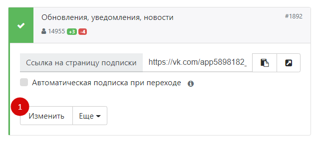 Чтобы зайти в настройки группы подписчиков, нужно у выбранной группы нажать на кнопку Изменить.