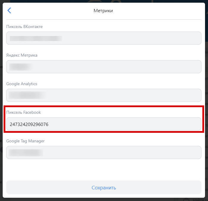 Интеграция с Facebook Pixel