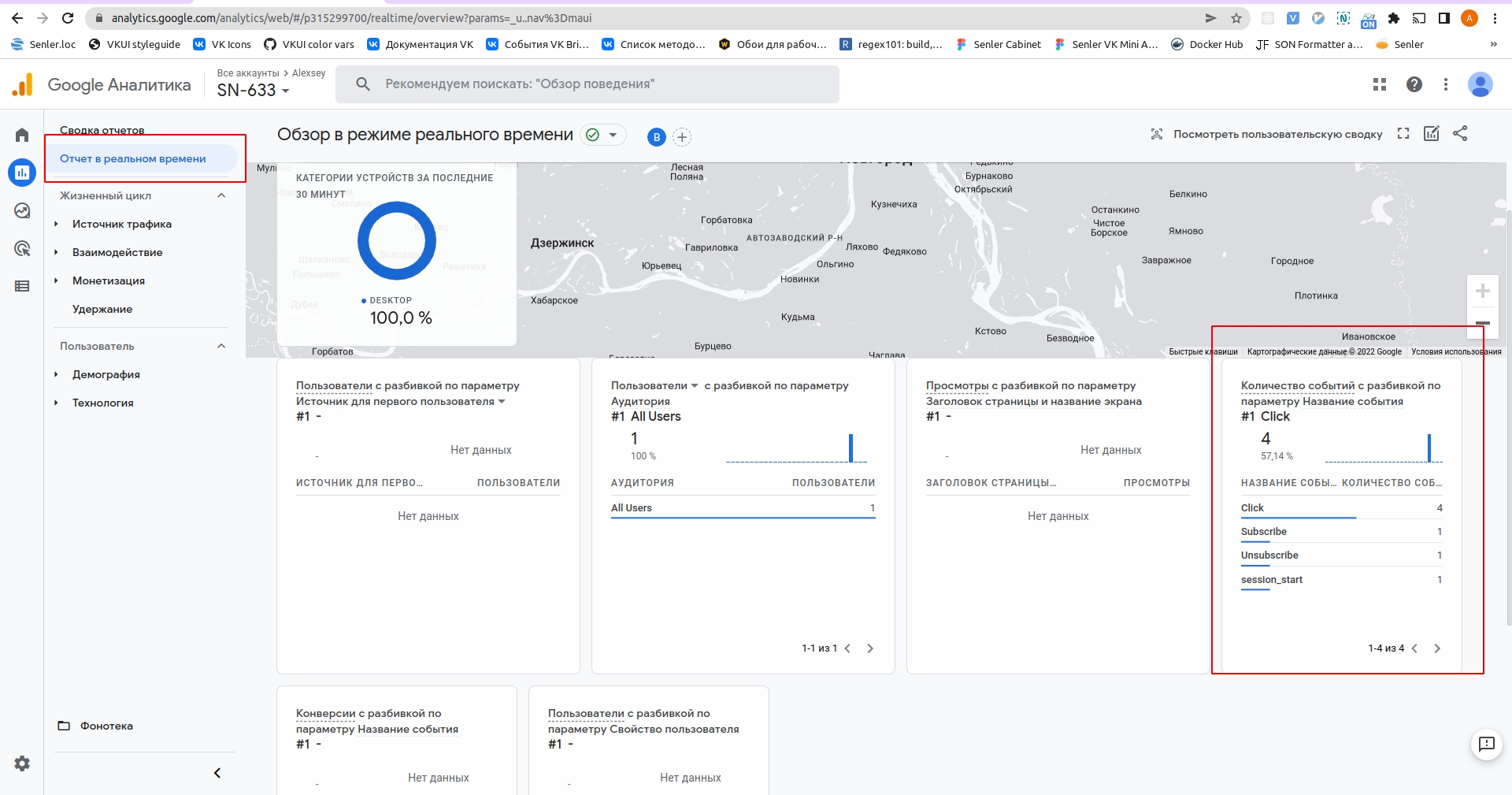 Cчетчик Google Analytics отслеживает посещаемость всех подписных страниц и всех событий без исключения.