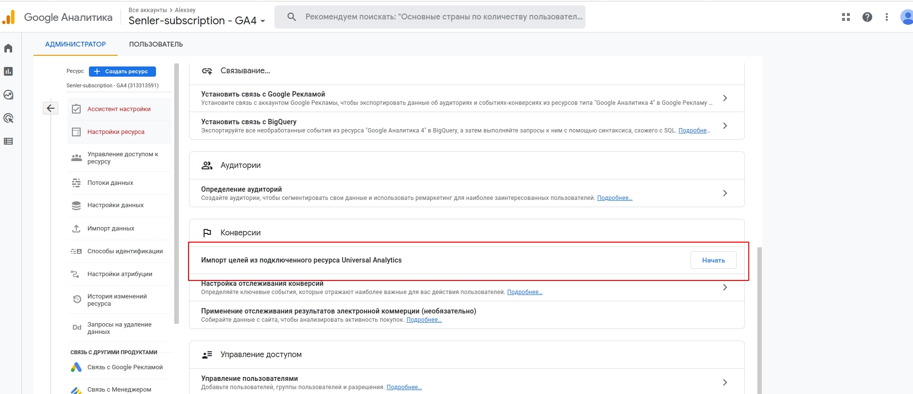 Это все, что касается целей. Также еще хотим отметить один момент - если нужно перенести цели из Universal analytics в GA4, то в созданном ресурсе GA4 есть импорт целей из Universal analytics: