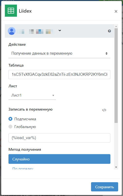 Записать в переменную - здесь нужно указать, в какую конкретно переменную хотите записать данные из таблицы. В качестве выбора представлены 2 варианта с примерами синтаксиса - переменная подписчика и глобальная переменная.