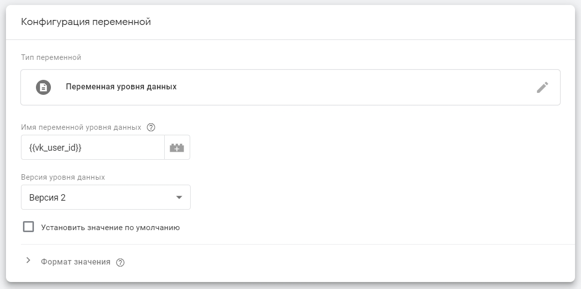 Вместе с событием в Google Tag Manager передаются дополнительные данные, например ID пользователя ВКонтакте и UTM-метки. Эти данные можно сохранить в переменные и далее использовать в тегах.