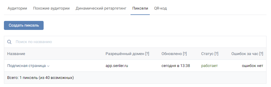 Перейдите в Рекламный кабинет ВКонтакте и создайте пиксель. В одном кабинете ВКонтакте можно создать до 40 пикселей.