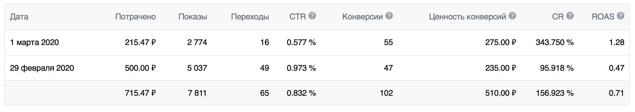 Ценность конверсии — это суммарная стоимость целевых действий, выполненных на вашем сайте за счёт рекламного объявления.