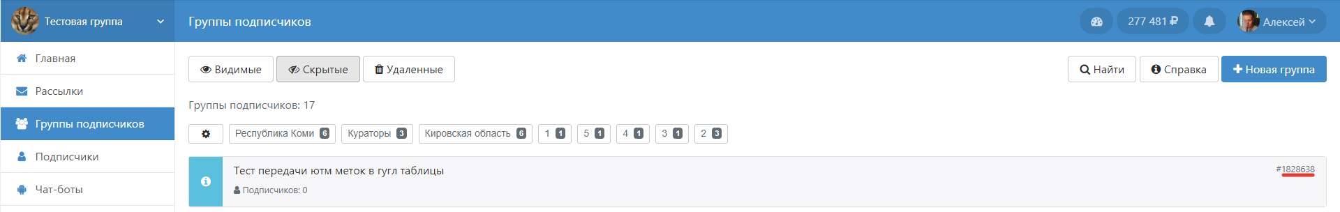 <figure><img src="https://content.gitbook.com/content/ZN10WvcXgl30afEjLBp4/blobs/c0jFCoyXk74WbGeypHwP/image.png" alt=""><figcaption><p>Идентификатор группы подписчиков</p></figcaption></figure>