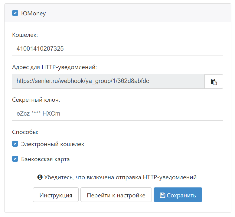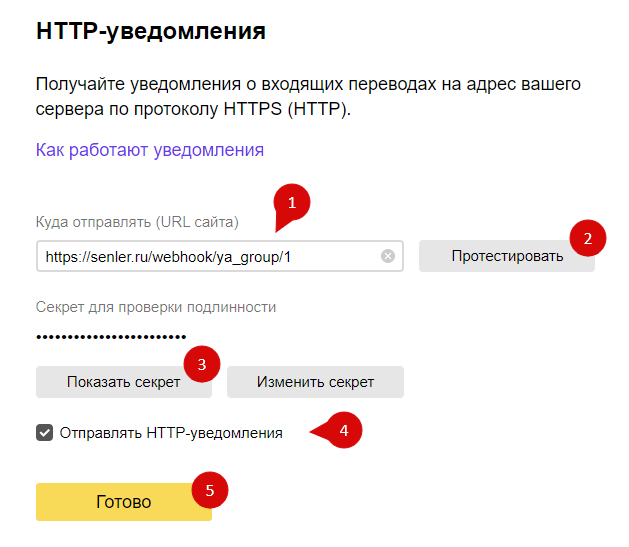 Перейдите в раздел HTTP-уведомления ЮMoney и установить адрес, который указан в личном кабинете.