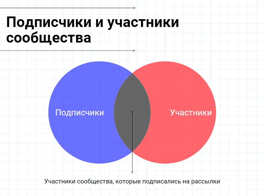 Участники сообщества и подписчики образуют два независимых множества, которые могут пересекаться, но не обязательно.
