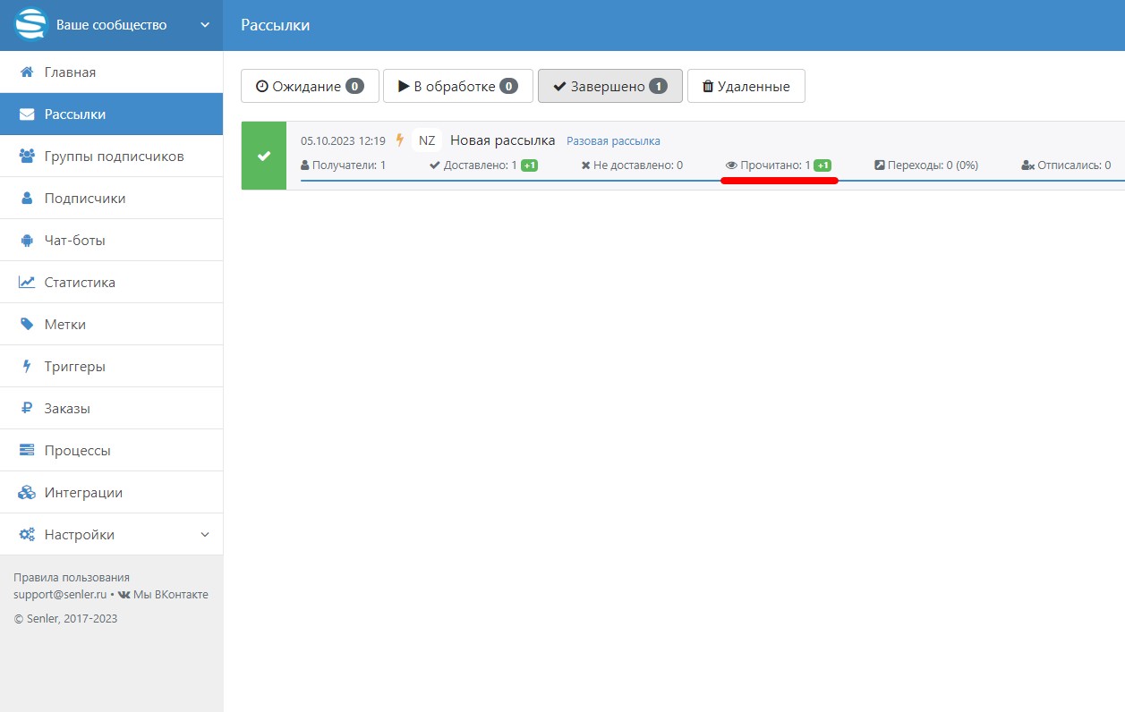 Для получения актуальных данных нужно просто обновить страницу с завершёнными рассылками.
