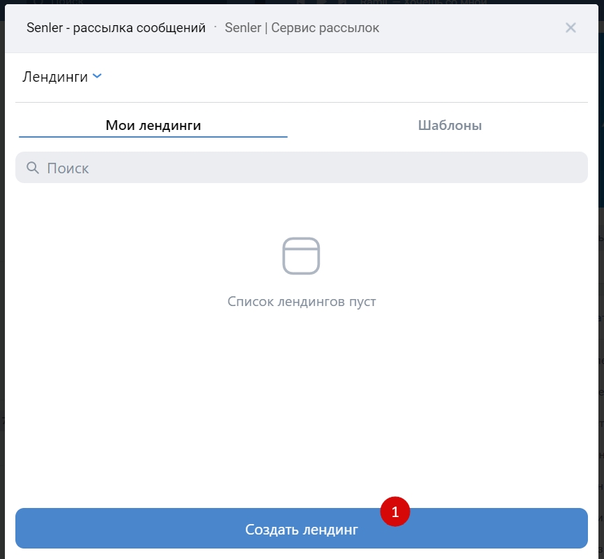 Для создания лендинга перейдите в раздел Лендинги и нажмите кнопку Создать лендинг.