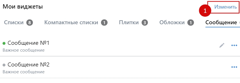 Чтобы включить режим массового изменения виджетов, нажмите на кнопку Изменить.