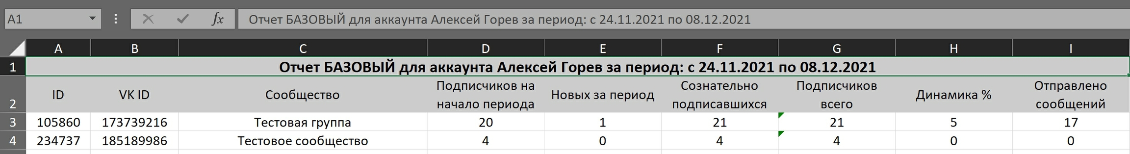 Подписчиков на начало периода - количество подписчиков на начальную дату, выбранную при формировании отчета